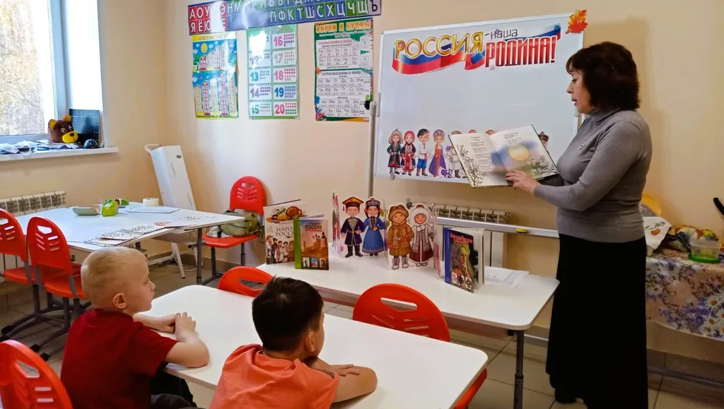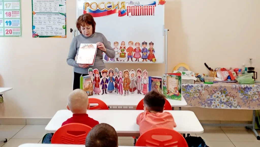 Рассказ о Дне народного единства сопровождался чтением стихотворений С. Д. Дрожжина «Родине» и К. С. Аксакова «Москва», загадками и пословицами о родной стране.