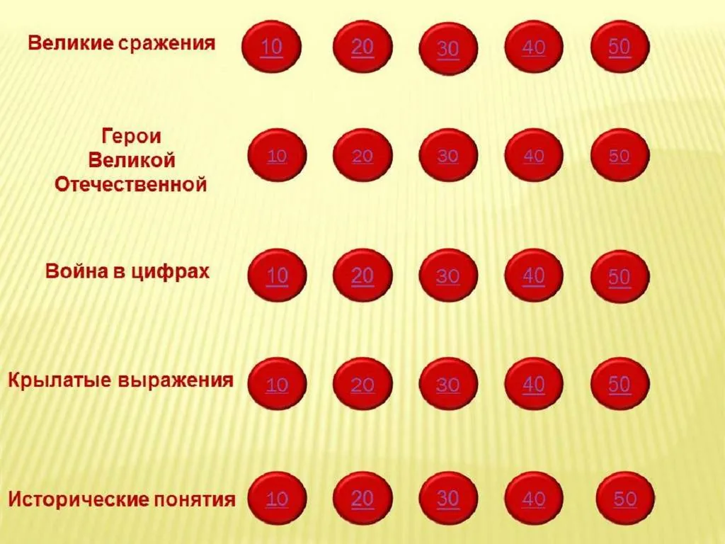 Класс разделился на две команды. Каждая команда выбрала капитана. Одна из команд выбрала тему и стоимость вопроса (количество баллов соответствующее стоимости вопроса), после чего на экране появлялся соответствующий вопрос.