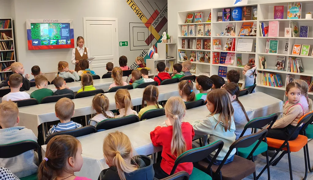 На интерактивной панели «Россия» прослушали голоса животных и отвечали на вопросы викторины «Времена года».