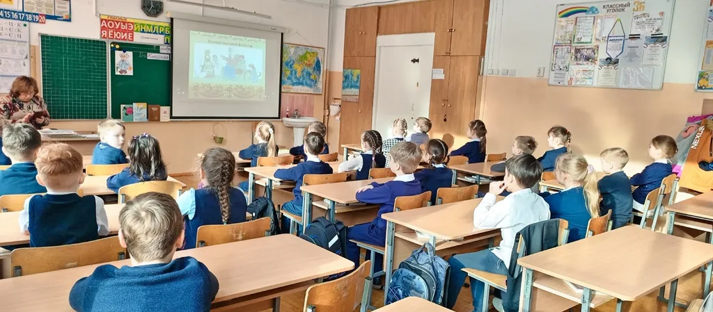 5 февраля сотрудники библиотеки - филиала №4 для учащихся 1 класса МБДОУ «СОШ №24 г. Йошкар - Олы» провели игру-путешествие «Сокровища Марийского фольклора». Ребята совершили путешествие во времена бабушек и дедушек, посмотрели видеофильм «Фольклор. Малые жанры фольклора», вспомнили сказки, загадки, считалки, колыбельные и застольные песни. Учащиеся узнали о народных традициях марийского народа, самобытность нашей культуры, слушали сказки марийского народа, отгадывали загадки, играли в игру «Собери пословицу». Школьники познакомились с истоками старины: ухваты и чугунки, короба и лапти, прялка с веретеном, угольный утюг. Дети с удовольствием отгадывали загадки и переводили слова на марийский язык, послушали марийские народные приметы, поиграли в игру «Если я приду в лесок», «Кто где живёт». Викторина «Пословица недаром молвится» показала знания в народной мудрости.