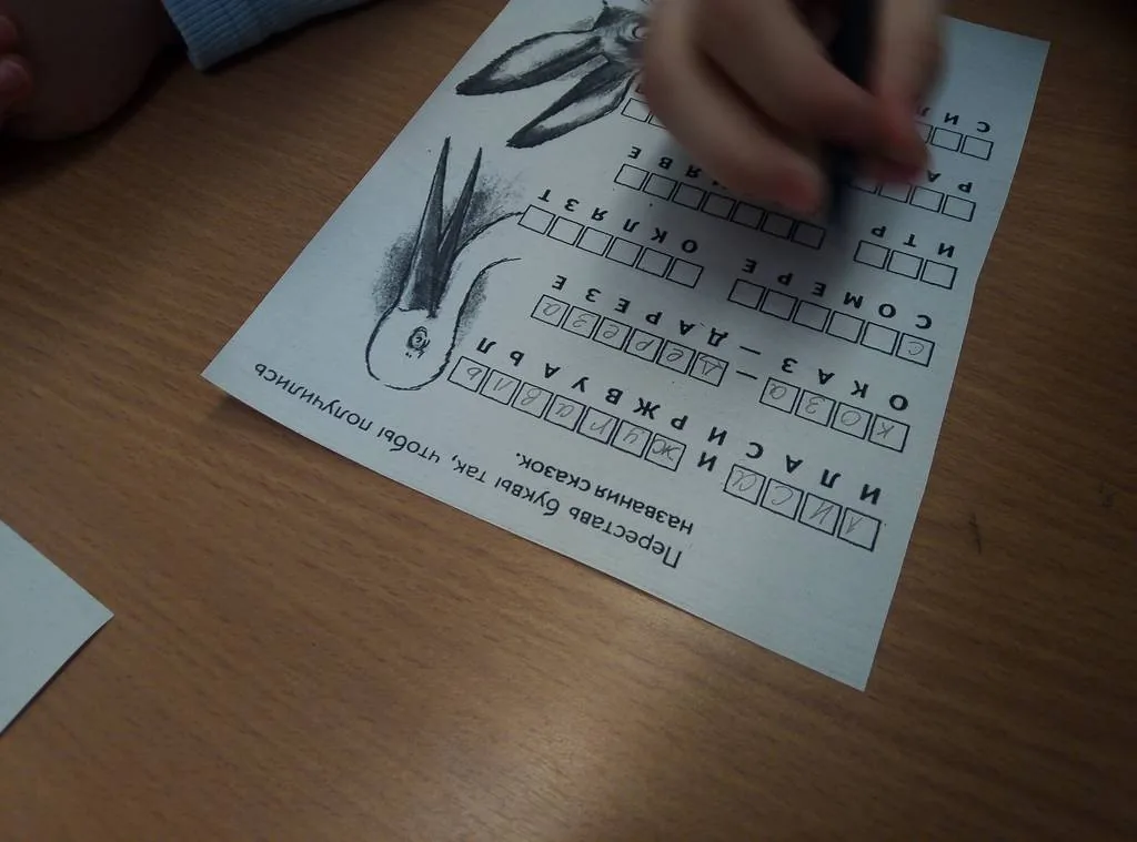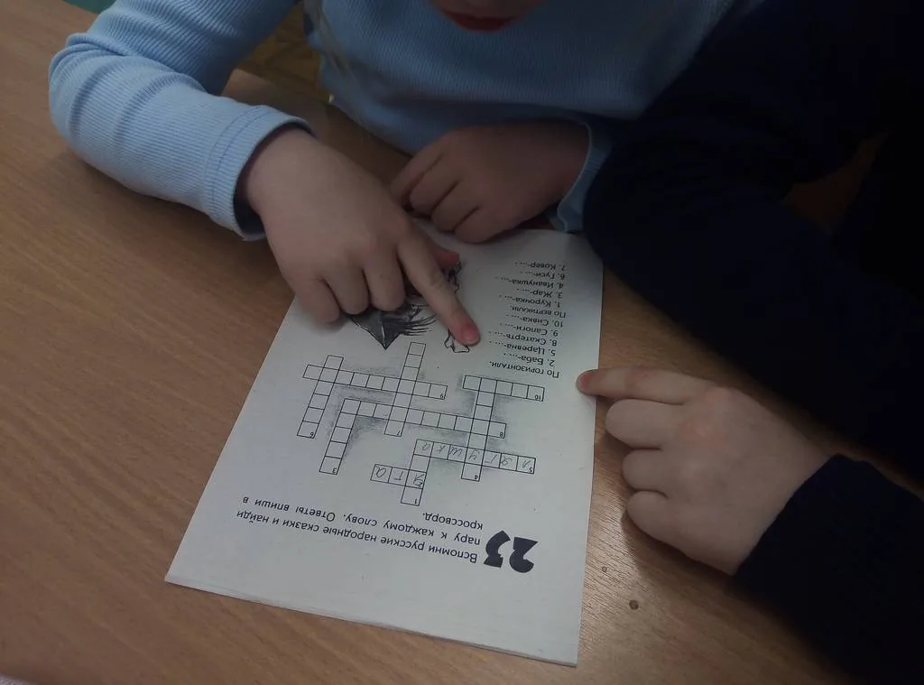 Ребята активно угадывали сказки и сказочных персонажей, участвуя в конкурсах: «Отгадай героя сказки», «Назови правильно сказку», «Найди автора сказки». А также им были предложены анаграммы по русским народным сказкам, найти пару сказочным героям, помогали потерявшемуся в лабиринте Чебурашке дойти до Гены и решали кроссворд по самой известной сказке «Колобок».