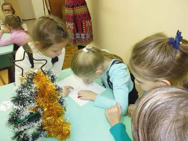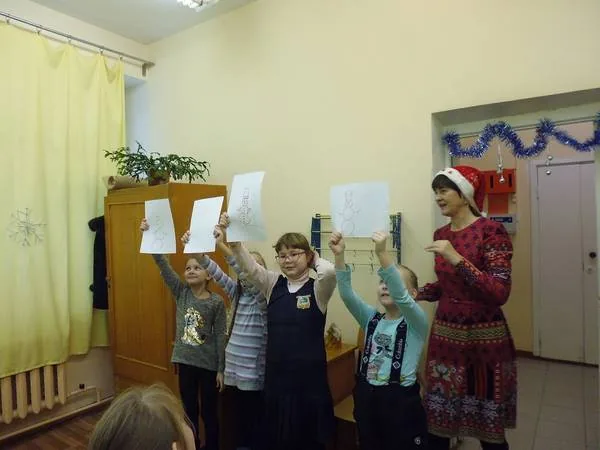 Затем мальчишек и девчонок развлекали разными конкурсами и играми. Разделившись на команды, школьники собирали из слов на скорость зимние поговорки. Далее сыграли в изобразительную игру «Нарисуй снеговика: кто быстрее». Следующей игрой была «Раз снежинка, два снежинка», где необходимо было смастерить новогодний атрибут без ножниц, одними руками без подручных средств.