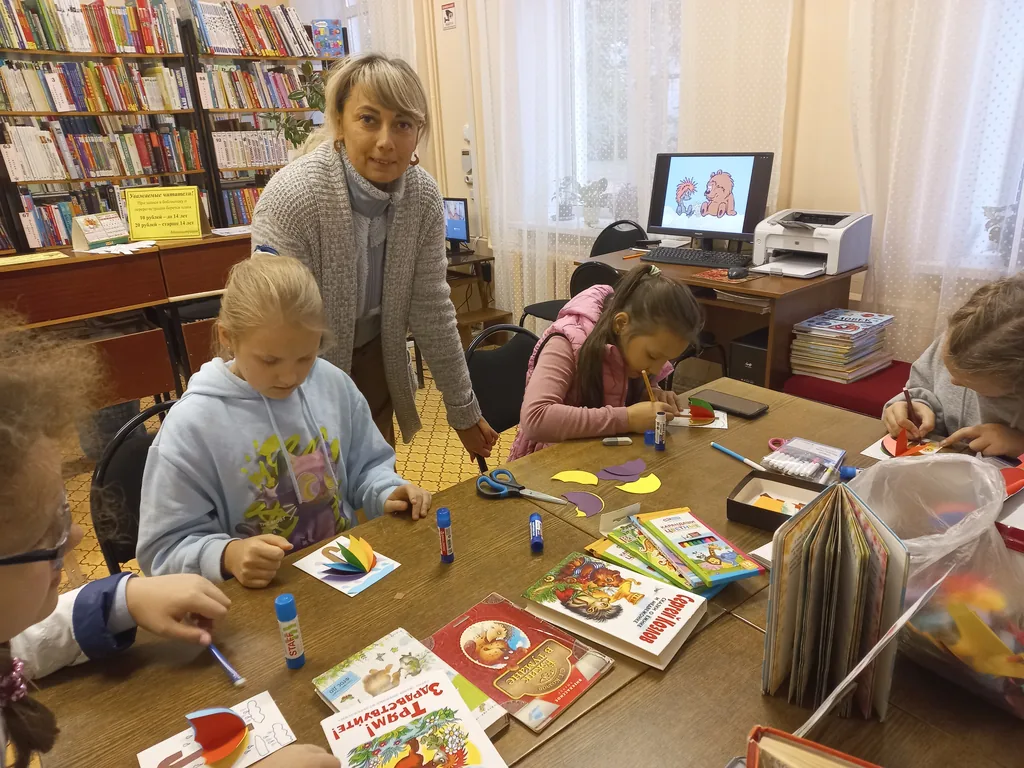 В завершение встречи для детей прошел краткий обзор имеющихся в фонде библиотеки произведений писателя с выставкой его книг. Также, ребята с удовольствием изготовили поделку из цветной бумаги – «Львенок и черепаха под радужным зонтиком».