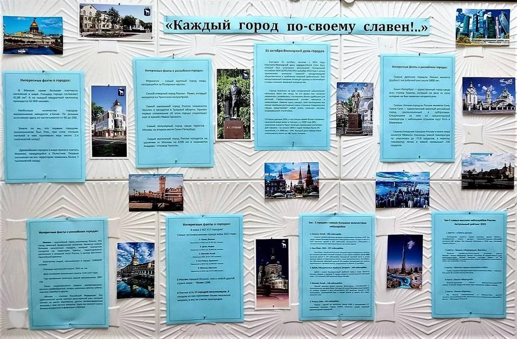 Информационно-тематический стенд «Каждый город по-своему славен!..» (Ко Всемирному Дню городов)