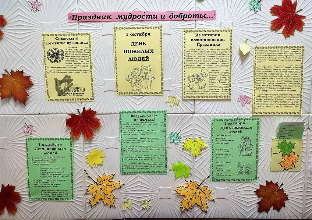 В библиотеке-филиале №19 к этой дате оформлен информационно-тематический стенд «Праздник мудрости и доброты», на котором размещена информация об истории возникновения дня добра и уважения, о символах и логотипах праздника, а также детские стихотворения-поздравления, посвященные бабушкам и дедушкам, пожилым людям. Стихотворения можно взять со стенда и прочитать своим родным, тем самым выразив глубокое уважение и сказав теплые слова благодарности.