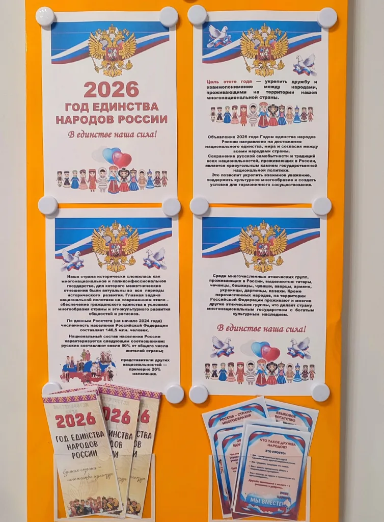 На стенде размещена краткая информация о цели этого года, о богатстве культур и истории народов, проживающих в нашей многонациональной стране.