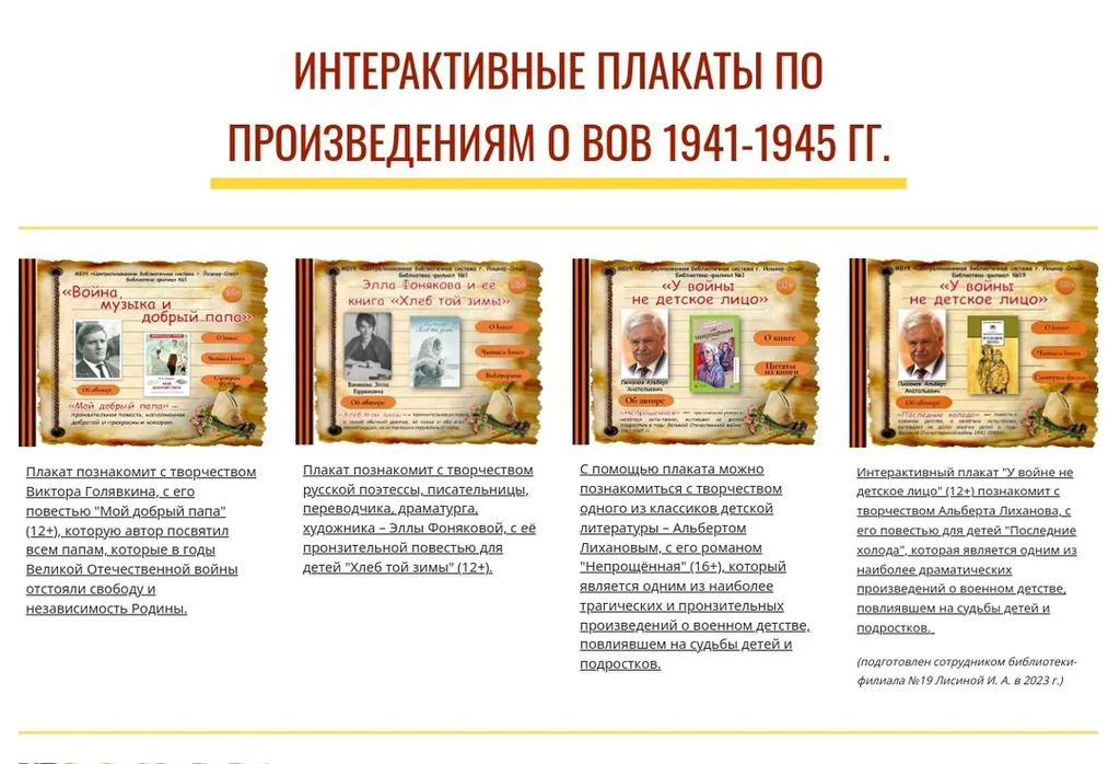Интерактивные плакаты доступны для просмотра и чтения на платформе онлайн-проекта «Читайте вместе с нами!» в разделе «К 80-летию великой Победы»: sites.google.com/view/bib1y...