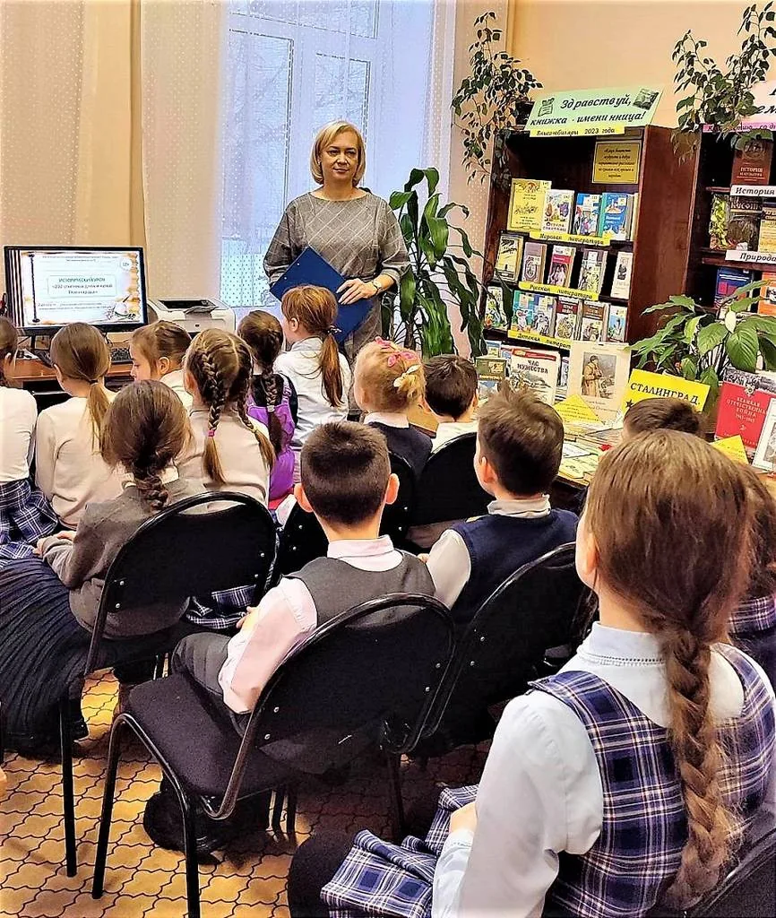 Библиотекарь рассказала о масштабах и значении Сталинградской битвы, о героях, отстоявших нашу Родину в тяжелые времена и их подвигах. Ребята совершили виртуальную экскурсию на Мамаев Курган, где расположен знаменитый ансамбль «Героям Сталинградской битвы» с главным монументом «Родина - мать зовёт!».