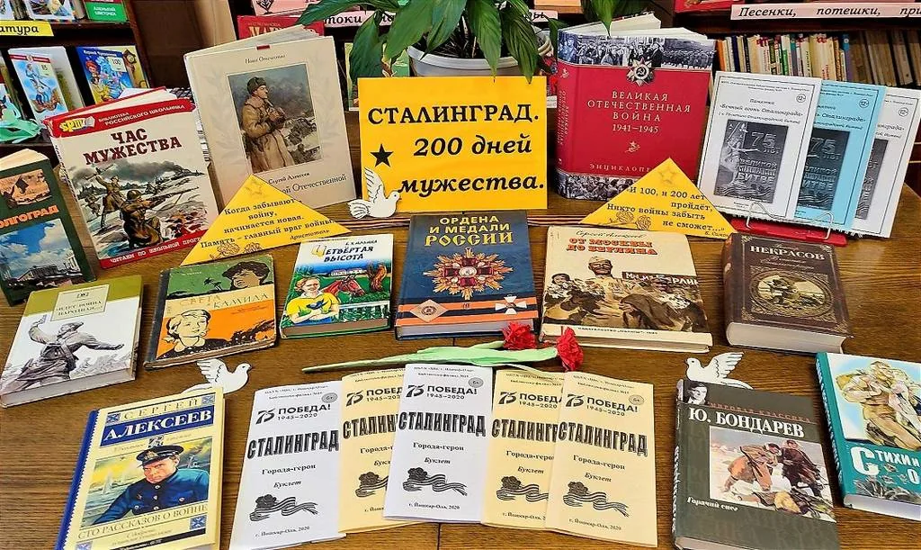 Учащихся познакомили с настольной книжной выставкой «Сталинград. 200 дней мужества», на которой представлены книги, посвященные этим героическим страницам Великой Отечественной войны.