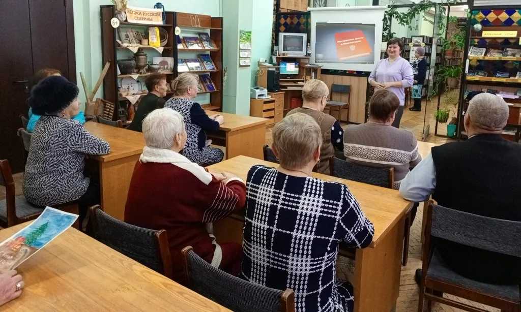31 января 2024 года первой Конституции СССР исполнилось 100 лет. Конституция 1924 года закрепила полное правовое равенство всех народов СССР и их суверенитет. Были утверждены Государственный флаг, герб и столица СССР. Гости библиотеки посмотрели презентацию «Человек. Государство. Закон», в ходе которой они вспомнили конституцию и справочные издания, посвящённые этой теме. Читатели получили задания и ответили на вопросы «Права и обязанности», а в конце приняли участие в викторине «Твои права от «А» до «Я».