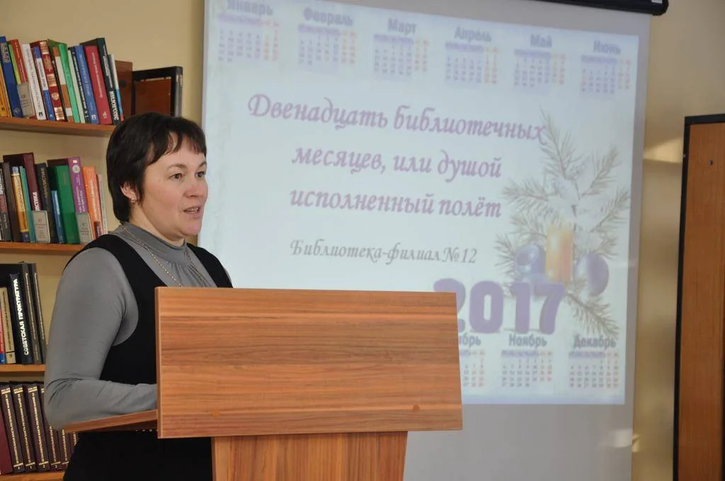 Отчет о проделанной работе представили и библиотеки-филиалы: «Библиотечный экскурс в 2017 год» провела К. А. Лебедева, заведующая библиотекой-филиалом №1 МБУК «ЦБС г. Йошкар-Олы». О том, чем запомнился прошедший год сотрудникам библиотеки-филиала №12 рассказала и показала заведующая С. В. Шабалина.