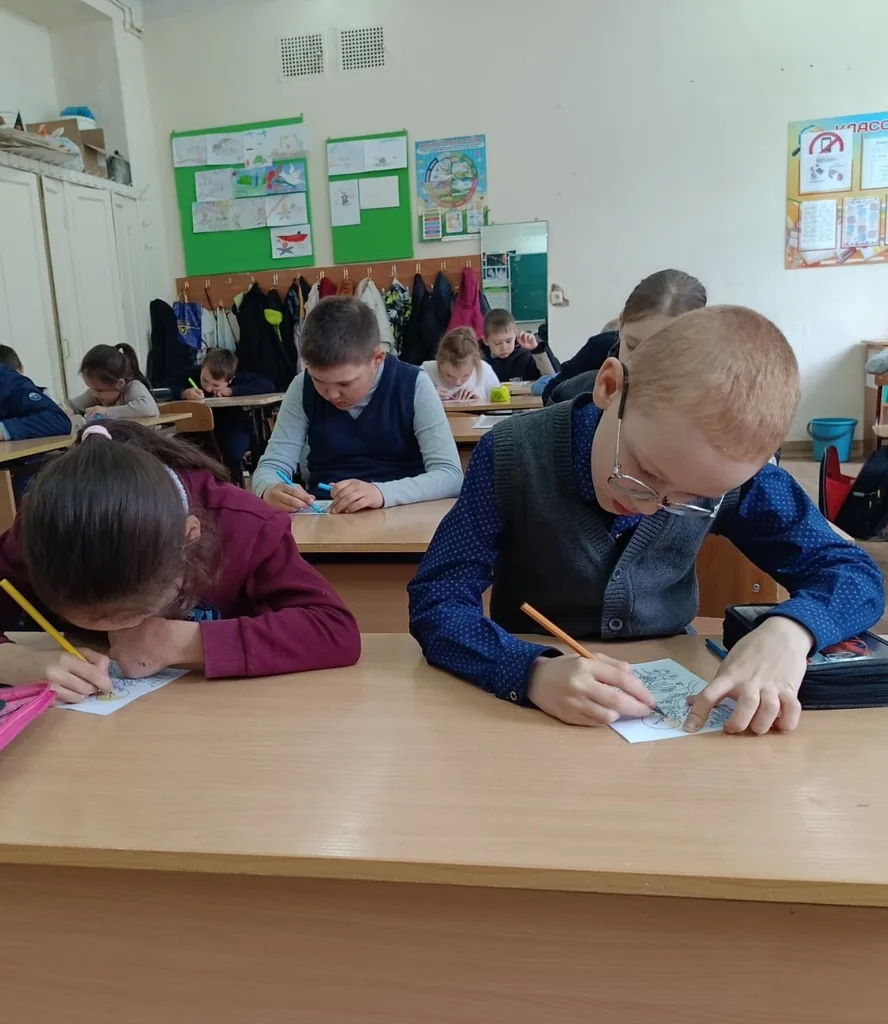 В конце мероприятия дети старательно выполняли коллективное задание «Раскрась весенний пейзаж».