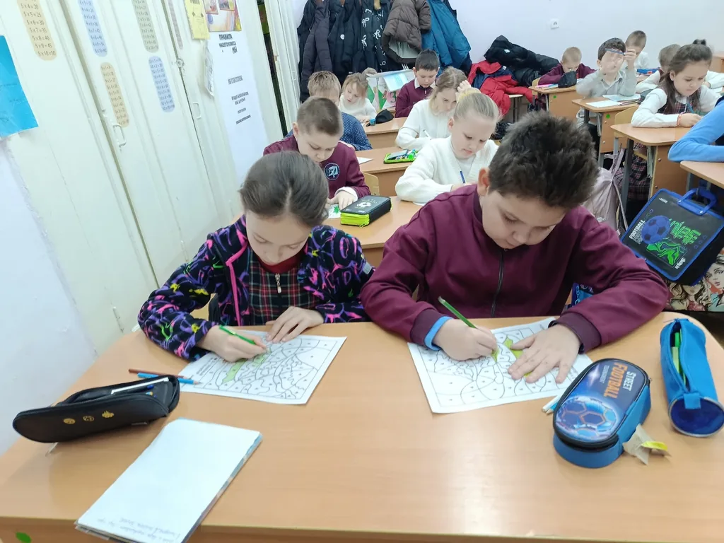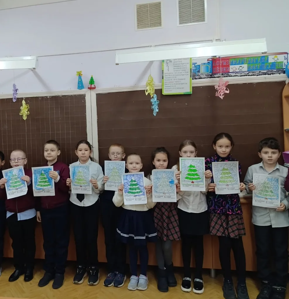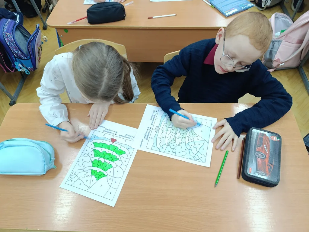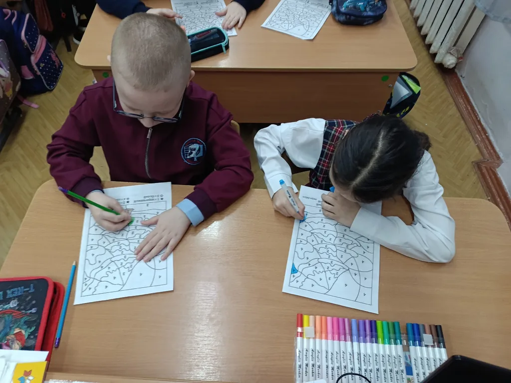 В конце мероприятия ребята выполняли коллективное задание «Раскрась по номерам зимний пейзаж».