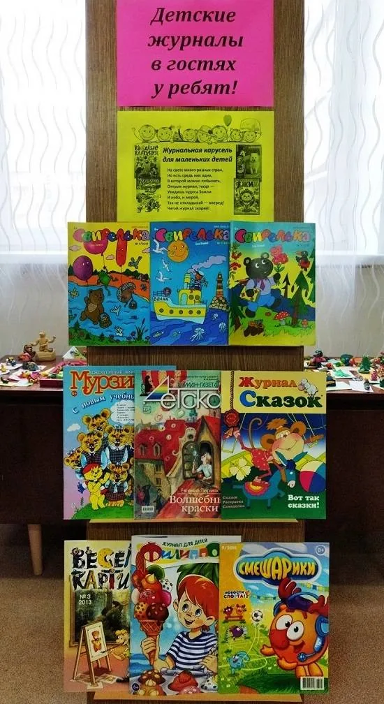 В читальном зале нашей библиотеки живут красочные, содержательные журналы для дошкольников, школьников, их очень много, вот некоторые из них: «Веселые картинки», «Смешарики», «Колобок», «Непоседа», «Журнал сказок», «Филиппок», «Свирелька», «Детская роман-газета» и многие другие. В журналах есть всё: загадки, ребусы, головоломки, комиксы, раскраски, новости со всего света. Ребята ознакомились с выставкой детских журналов.