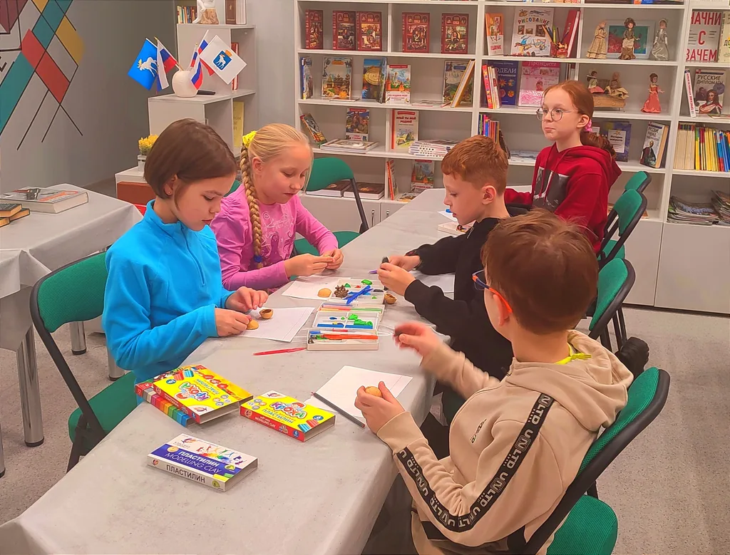 В дни очередных осенних каникул в библиотеке особенно многолюдно. Школьники приходят сюда, чтобы полистать журналы и энциклопедии, обязательно выбрать книгу для домашнего прочтения, поиграть в настольные и интерактивные игры, собрать пазлы или изготовить поделку из пластилина.