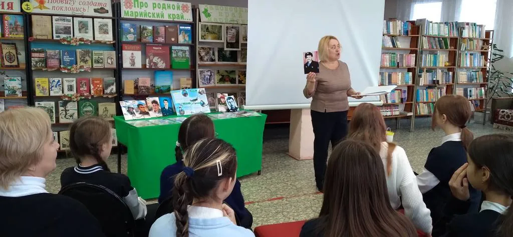Затем библиотекарь рассказала ребятам о боевых вылетах трижды Героя Советского Союза – летчика Александра Ивановича Покрышкина, отметив, что он один из самых известных асов русской авиации, большинство своих побед одержал в первые годы Великой Отечественной войны. Беседа продолжилась рассказом о Герое Российской Федерации – военном летчике Романе Николаевиче Филипове, который погиб при выполнении боевого задания в Сирийской Арабской Республике, подорвав себя вместе с боевиками гранатой. Боевики сами, не понимая, прославили подвиг русского летчика, сняв на видеокамеры и показав всему миру, как сражается и как умирает русский солдат.