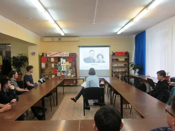 С помощью электронной презентации молодые люди имели возможность увидеть памятник, мемориальную доску, сквер им. Гранина в Санкт-Петербурге и почтовую марку России 2019 г., посвященную писателю.