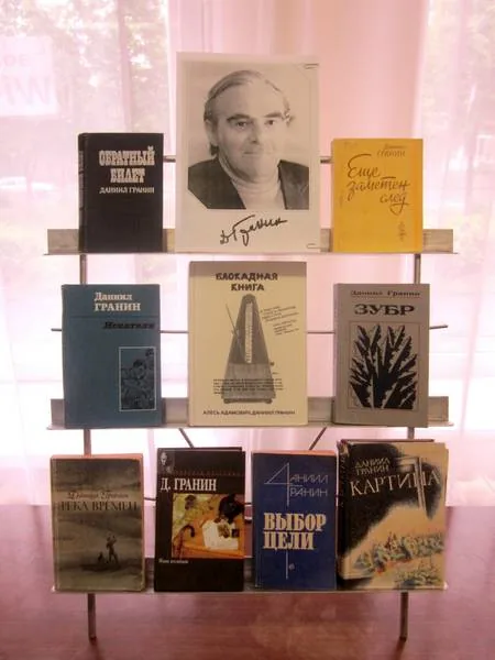 Библиотекарь Кашкова В. Ю. познакомила молодежную аудиторию с фактами биографии известного автора: его детством, семьей, ранним увлечением литературой, первым рассказом, написанным им в 14 лет. Далее речь зашла о годах учебы, участии Даниила Гранина в Великой Отечественной войне, работе в Ленэнерго и научной работе, которую он совмещал с литературным творчеством. Было определено основное направление и тематика произведений, а именно, реализм и научные изыскания, борьба между талантливыми учеными и карьеристами, бюрократами.