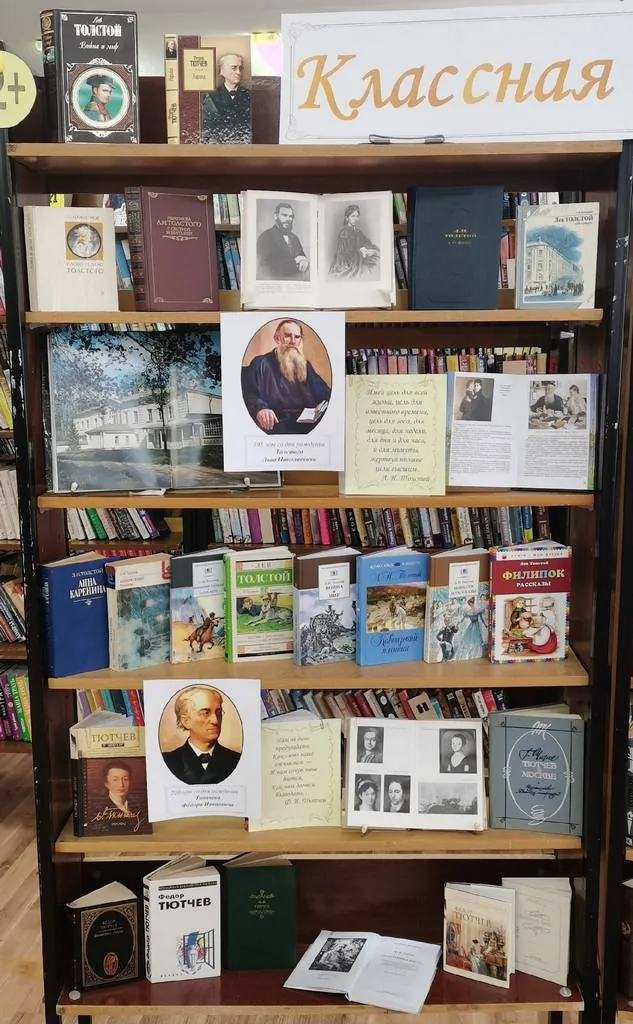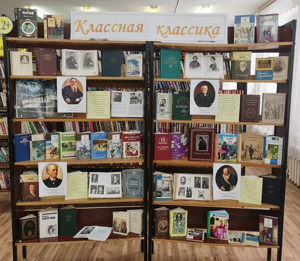 Бесспорные шедевры русской литературы представлены на книжной выставке «Классная классика», посвященной писателям-юбилярам: Ф. И. Тютчев – 220 лет со дня рождения, И. С. Тургенев – 205 лет со дня рождения, А. Н. Островский – 200 лет со дня рождения, Л. Н. Толстой –195 лет со дня рождения.