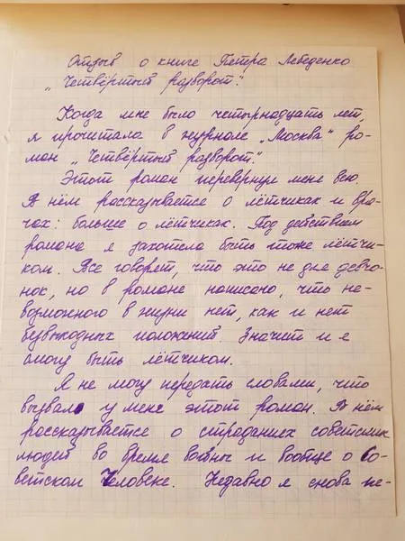 «Отзыв о книге Петра Лебеденко «Четвёртый разворот». Когда мне было четырнадцать лет, я прочитала в журнале «Москва» роман «Четвёртый разворот».