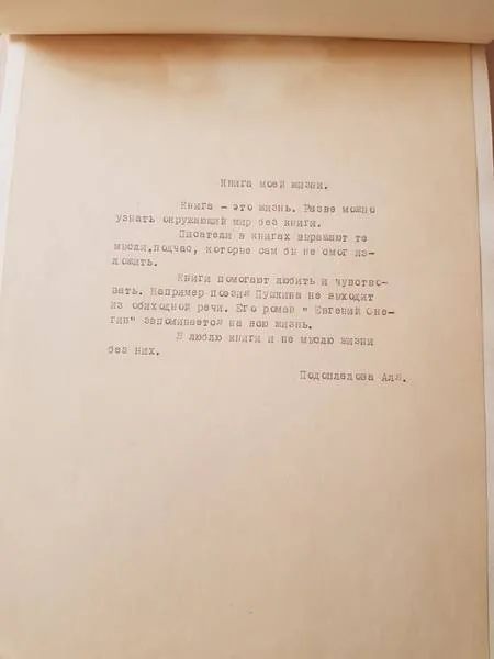 «Книга в моей жизни. Книга – это жизнь. Разве можно узнать окружающий мир без книги. Писатели в книгах выражают те мысли, подчас, которые сам бы не смог изложить.