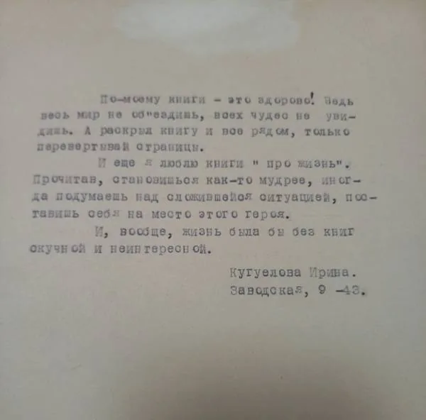 И, вообще, жизнь была бы без книг скучной и неинтересной. Кугуелова Ирина.»