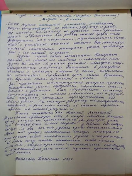 «Отзыв о книгах Мельникова (Андрея Печерского) «На горах» и «В лесах». Много разных писателей пыталось отобразить жизнь старообрядцев, их обычаи, доброту и злобу. Но никому, по-моему, не удалось это сделать кроме А. Печерского. Его долгое житье среди этих добродушных, но с «кондовыми» незыблемыми обычаями и уставами, помогло понять всю несправедливость положения женщины, закон целомудрия с его плохой стороны.
