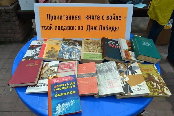 - акция «Прочитанная книга о войне – твой подарок ко Дню Победы» также не осталась без внимания прохожих. Многие брали не по одной, а по несколько книг, и торжественно обещали их прочесть;