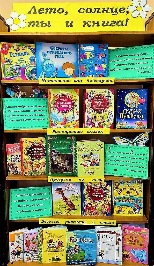 Библиотека-филиал №19 подготовила для юных читателей книжную выставку «Лето, солнце, ты и книга», на которой представлены яркие, увлекательные и полезные книги о явлениях природы, чудесах техники, рассказы о животных, озорные стихи, веселые истории и любимые сказки! Лето – это прекрасная, самая долгожданная пора для детей. Это прекрасное время для солнечных и теплых дней, а еще лето – это время читать!