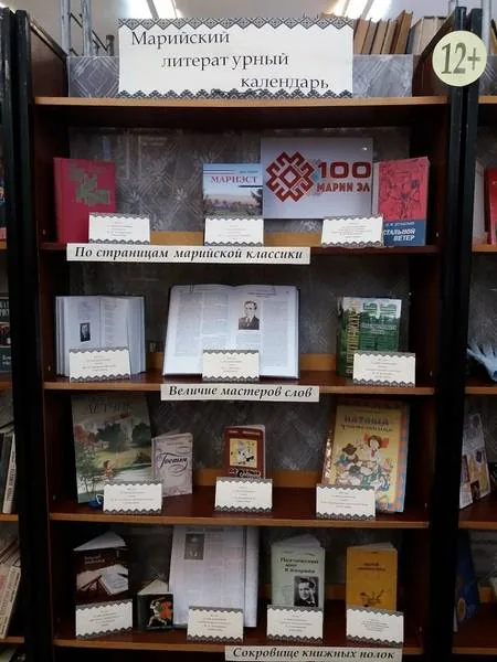 Книжная выставка «Марийский литературный календарь» приурочена к 100-летию Республики Марий Эл.
