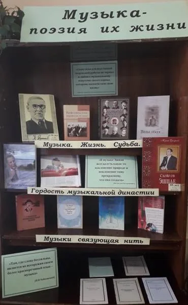 В библиотеке-филиале №19 оформили книжную выставку «Музыка – поэзия их жизни», приуроченную к двум знаменательным юбилеям – 130-летию со дня рождения Якова Андреевича Эшпая (1890-1963), одного из первых марийских педагогов, профессиональных композиторов и музыковедов-фольклористов и 95-летию со дня рождения его сына – всемирно известного композитора, общественного деятеля, народного артиста СССР Андрея Яковлевича Эшпая (1925-20). Выставка состоит из трех разделов.