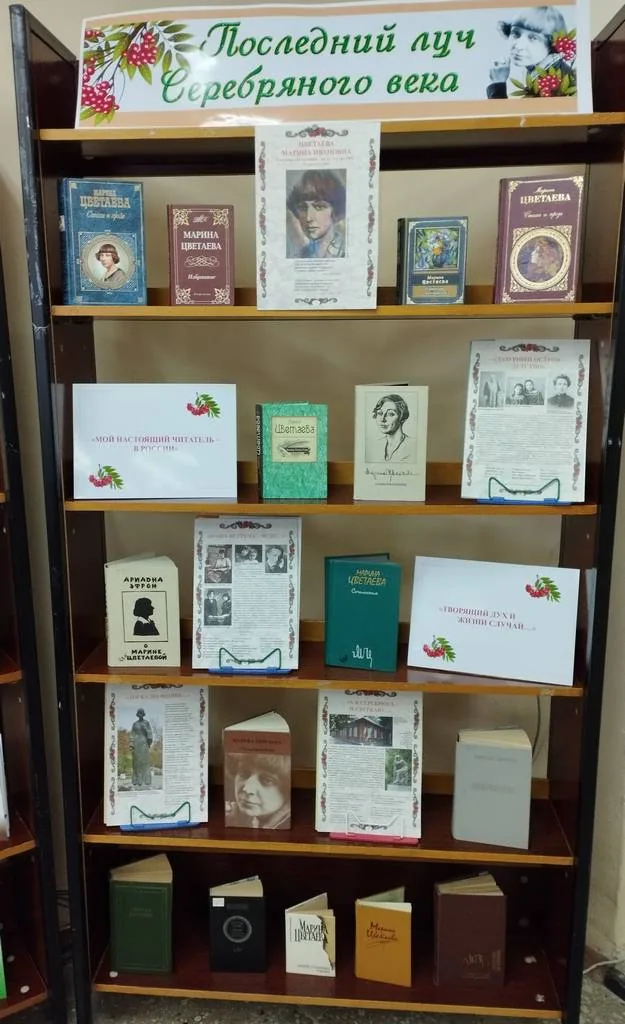 В Центральной детской библиотеке оформлена книжно-иллюстративная выставка «Последний луч Серебряного века», посвященная 130-летию со дня рождения русского поэта Марины Ивановны Цветаевой.