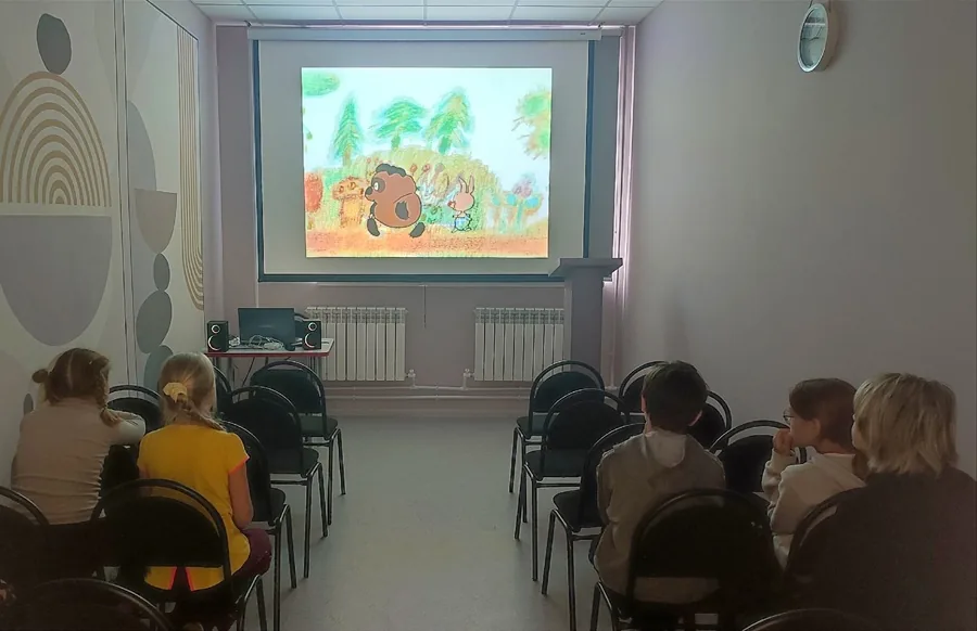 В кинозале юные читатели смотрели веселые мультфильмы, а взрослые, в ожидании детей, работали за ноутбуками, выбирали книги для домашнего прочтения, знакомились с периодикой.