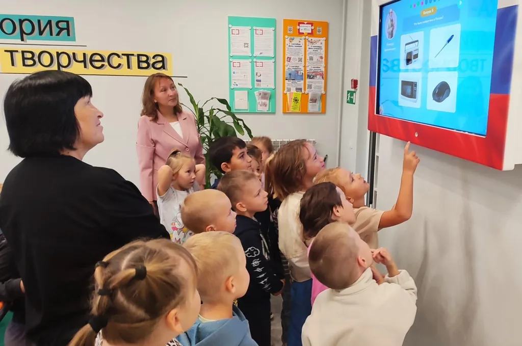 Ребята ознакомились с порядком расположения книг в зоне актуального чтения, правилами записи в библиотеку, новыми книжками, детскими журналами, а также вспомнили правила обращения с книгами и конечно же поиграли в развлекательные игры на интерактивной панели «Подсолнух». Далее библиотекарь ознакомила детей с выставками, расположенными в зоне творческого развития и интерактивной панелью «Россия».