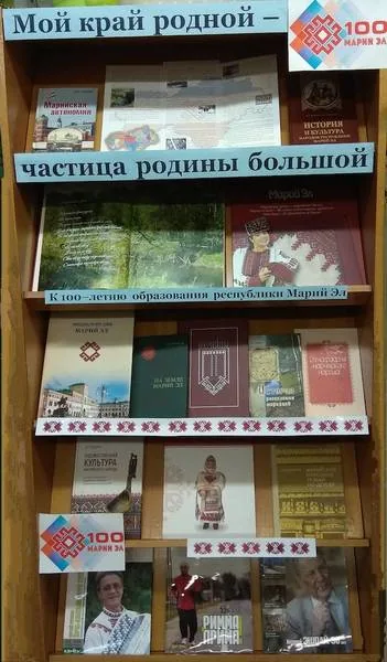 В 2020 году Республика Марий Эл отмечает свое 100-летие. К юбилею республики в библиотеке-филиале №1 оформлена книжная выставка «Мой край родной – частица Родины большой».