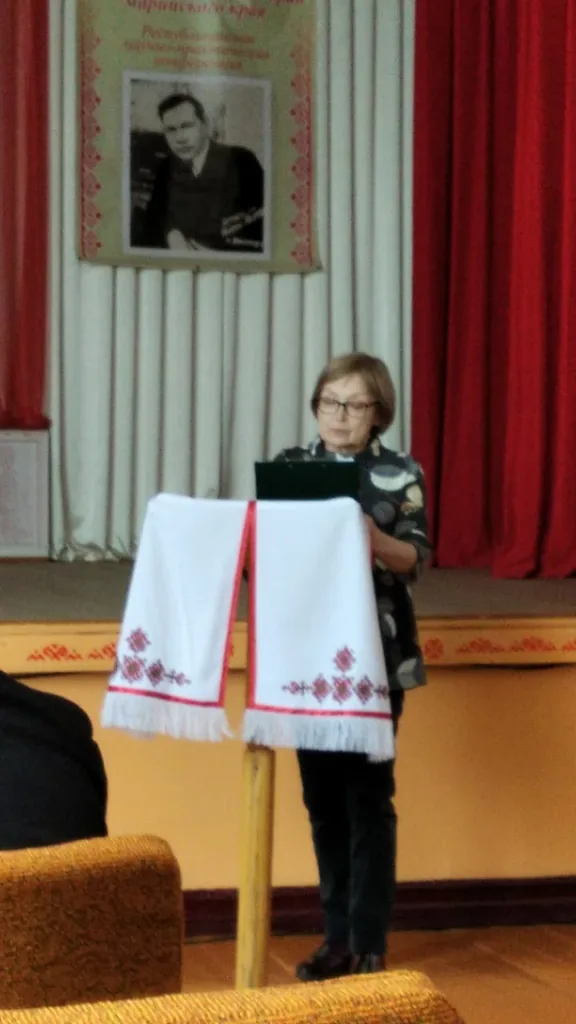 После приветствий высоких гостей и пленарного заседания, наша секция направилась в деревни Купсола и Марисола, расположенные рядом друг с другом, но в двенадцати километрах от Сернура. Именно здесь актер родился и учился в школе.