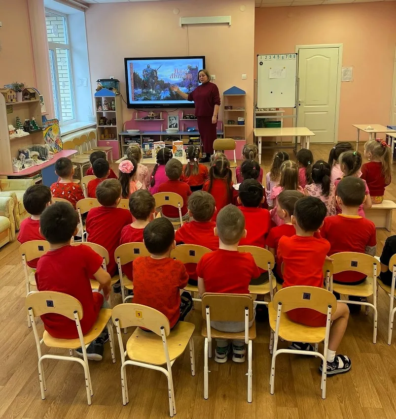 В начале встречи библиотекари раскрыли понятие «Защитник Отечества» начиная от русских богатырей и до современных героев СВО. Дети внимательно слушали рассказы Сергея Алексеева «Талалихин» и «Подвиг у Дубосекова».