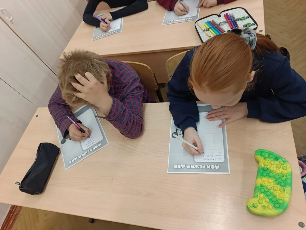 В конце мероприятия ребята старательно выполняли задание «Мой режим дня».
