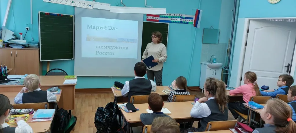 В преддверии дня рождения нашей республики 24 октября было проведено занятие для учащихся 3"а" класса МБОУ «Средняя школа №23» , "Марий Эл - жемчужина Поволжья". В ходе которого ребята побывали на "экскурсии" по республике. Вспомнили количество и названия городов, районов. При этом каждый узнал среди них свой. А как же иначе? Если там живут бабушки, дедушки, другие родственники. Полюбовались красотами родной природы: извилистыми реками, чистыми озёрами, богатыми лесами, раздольными лугами. Прикоснулись к истории народа мари, к её самобытности. Оценили трудолюбие и мастерство народных умельцев, сумевших сохранить ремесло. С удивлением узнали, что многие виды сохранились почти в неизменном виде. Ведь, например, одежда с вышивкой, плетёная мебель, корзинки, украшения, сохранились не только в сувенирной продукции, но и активно используются в повседневной жизни потому, что это не только красиво, но и удобно.