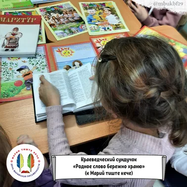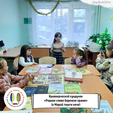 10 декабря сотрудники библиотеки-филиала №29 провели краеведческий сундучок «Родное слово бережно храню» для воспитанников детского клуба «Факел», который был приурочен к государственному празднику Республики Марий Эл – Марий тиште кече или Дню марийской письменности.