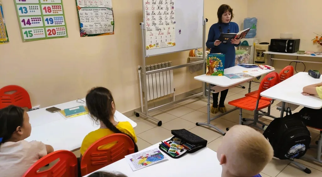 В рамках работы кружка «Книжное творчество и фантазия» для ребят группы продлённого дня Центра образования детей «Город детей» было проведено мероприятие «Красота есенинских строк». Рассказ библиотекаря о жизни и творчестве Сергея Есенина сопровождался поэтическими зарисовками. Внимание детей было обращено на то, как лирично и образно описывал поэт осеннюю природу, какие сравнения и метафоры он употреблял. Юным слушателям объяснили значение устаревших слов, дети прочувствовали всю красоту есенинских строк.