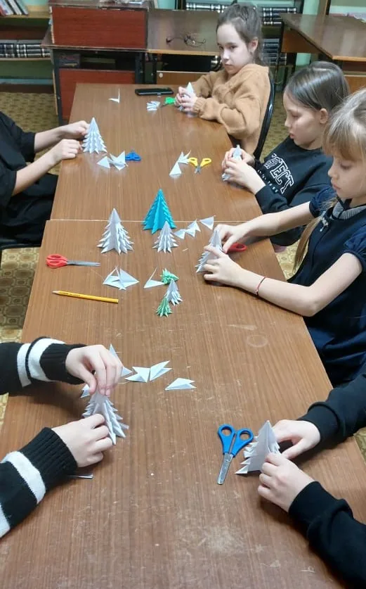 Главной фигурой в ожидании Нового года является ёлка. И так повелось, что вокруг неё водили хороводы, пели песни, и её стали украшать. Сначала это были сладости в ярких упаковках, фрукты, которые заворачивали в цветную бумагу. Также, для украшения, склеивали цепочку из бумаги и вешали на ёлку. В особо богатых домах на ёлке крепили свечки и зажигали их. Это, конечно, были стародавние времена. Нынче всё иначе. Сами смыслы остались, но украшения стали ярче, долговечнее. Конфеты и фрукты теперь кладут в качестве подарков. И украшения для ёлок и домов всё изысканнее. Очень популярны новогодние композиции. Они дают простор фантазии. Вот поэтому, на занятии кружка мы учились складывать ёлочки из бумаги в технике оригами. Они получаются оригинальные и стильные. С их помощью легко создать новогоднее настроение. Теперь каждая из девочек имеет несколько ёлочек, а самое главное – умение эти ёлочки сложить.