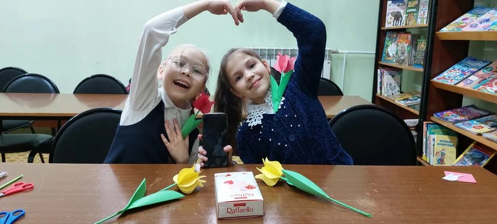 И пройди хоть двести лет - ничего не меняется ни в природе, ни в людях. Люди испытывают те же чувства, совершают те же поступки. Недаром, среди наших читателей пользуются популярностью произведения классиков литературы. Их произведения настолько современны, насколько позволяет время. Не одно поколение читает и удивляется такому факту. Что уж говорить о природе. У неё свои законы, которые - соблюдаются. Иногда, конечно, с нюансами, но это и прекрасно! Несмотря на непривычно тёплую нынче зиму, мы все рады приходу весны. Шумно отгуляли масленичную неделю, а скоро поздравим всех милых и любимых с 8 марта. Вот последнему событию и приурочили занятие кружка "Золотые ручки" - решили "вырастить" тюльпаны своими руками. Идей было множество, но мы выбрали для этого смешанную технику: оригами+аппликация. Очень пригодились навыки фигурного вырезания, аккуратного приклеивания. Результатом остались довольны - ведь у девочек готов подарок к празднику и для мамы, и для бабушек.