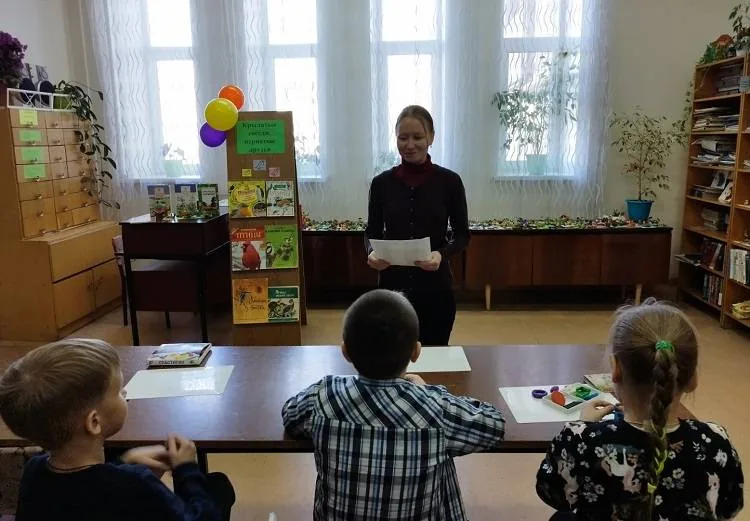 В преддверии этого дня библиотекарь рассказала детям информацию про птиц. Далее прочитала рассказ Георгия Скребицкого «Длиннохвостые разбойники» с последующим его обсуждением. Также дети читали стихотворения В. Берестова «Чайки». Потом школьники отгадывали загадки про птиц, играли в игру «Весна птицей прилетела». В завершении занятия ребята лепили из пластилина фигурки птиц.