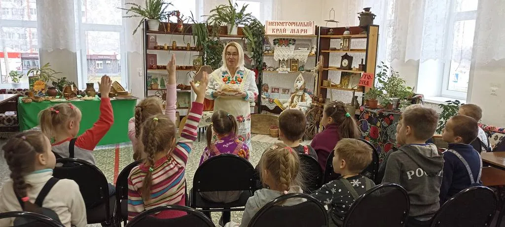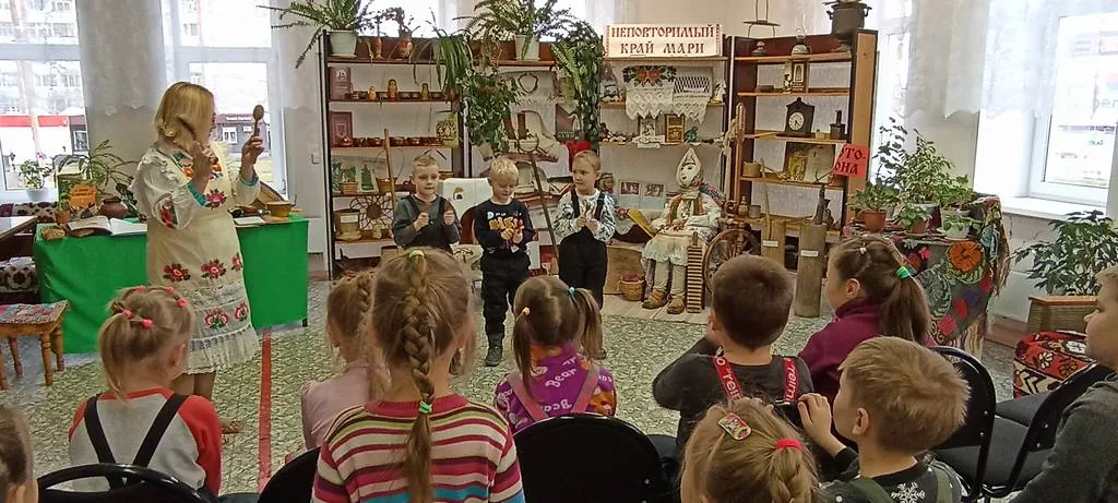 Узнали ребята и о том, что в марийских семьях детей привлекали к труду с самого раннего возраста – мальчиков обучали ремесленному делу, умению плести лапти, а девочек – учили искусству вышивания. Любили в марийских семьях праздники – где поют, танцуют и играют.