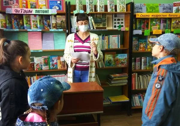 Детям задавались загадки по русским сказкам, с последующей демонстрацией книг, также ребята отгадывали сказку по ключевым словам (Заяц, лиса, медведь, собака, петух –«Заюшкина избушка»), вспоминали какие слова нужно произнести, чтобы вызвать Сивку- Бурку или вместе с Али- Бабой открыть дверь в пещеру с сокровищами, участвовали в конкурсе переводчиков (Женщина пожилого возраста была владелицей пары жизнерадостных птичек «Жили у бабуси два веселых гуся»), вспоминали, сколько желаний может исполнить золотая рыбка и кого боялись семеро козлят, а также отгадывали летние загадки, собирали пословицы, рекомендовали любимую книгу друзьям.