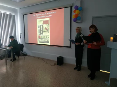 В этом году 27 января исполнилось 80 лет со дня полного освобождения Ленинграда от фашистской блокады. Встреча была посвящена «Блокадной книге» Даниила Гранина и Алеся Адамовича. Школьники познакомились с историей создания книги и её содержанием. Узнали, какую колоссальную работу проделали авторы, записав воспоминания людей, переживших это трагическое для Ленинграда и его жителей время.