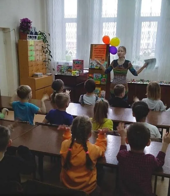 Дети под веселую музыку прошли в читальный зал, где познакомились с красочно оформленной выставкой поделок из пластилина, с выставкой к Неделе детской книги, на которой представлена детская литература популярных поэтов и писателей. Библиотекари рассказали детям об истории праздника НДК, о разнообразии книг по формату и названиям. Были подобраны книги, в названии которых присутствует цвет («Красная шапочка», «Синяя борода», «Оранжевое горлышко», «Аленький цветочек» и т.д.), а также названия книг с числительными («Три поросенка», «Два брата», «Четыре желания» и т.д.).