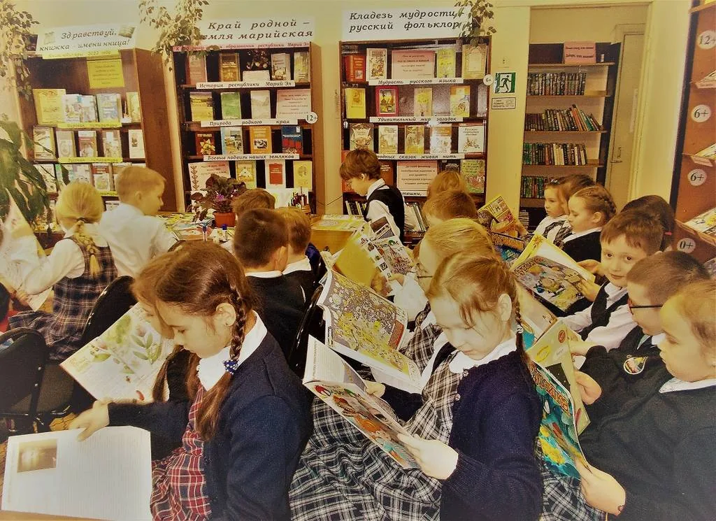 В первый день Книжкиных именин библиотеку посетили первоклассники МБОУ «СОШ №15 г.Йошкар-Олы». Ребятам рассказали про то, когда и где зародился этот весёлый праздник, посвящённый детской книге. Неделя детской книги отмечается в нашей стране уже 80 лет. История этого праздника уходит в военный сорок третий, когда под сводами Колонного зала Дома Союзов звенели ребячьи голоса. Это московская детвора собралась на встречу со своими любимыми писателями, некоторые из которых приехали прямо с фронта. Шла война, не хватало еды, в домах было холодно – а в Колонном зале дети слушали выступления любимых писателей и поэтов: Самуила Яковлевича Маршака, Сергея Владимировича Михалкова, Агнии Львовны Барто, Михаила Михайловича Пришвина, Льва Абрамовича Кассиля, Корнея Ивановича Чуковского. Инициатором праздника стал Л. А. Кассиль. Для ребят военного времени встреча с известными писателями стала лучшим подарком. Эта неделя празднуется в конце марта по всей нашей стране.
