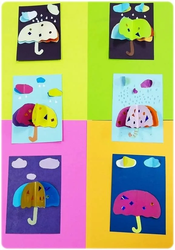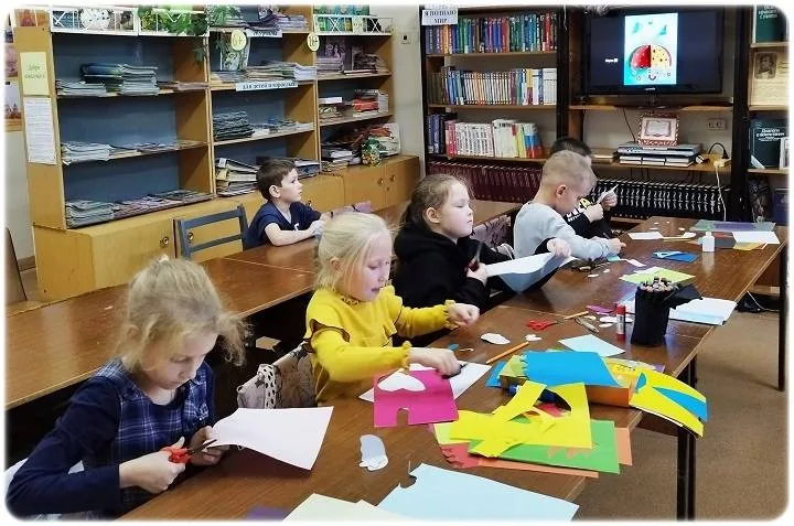 В завершение занятия библиотекарь кратко пересказала сказку Андерсена Г.Х. «Оле-Лукойе». Дети безошибочно угадали тему творческого задания - это волшебные зонтики Оле-Лукойе. Затем перешли к изготовлению объемных аппликаций из цветной бумаги.